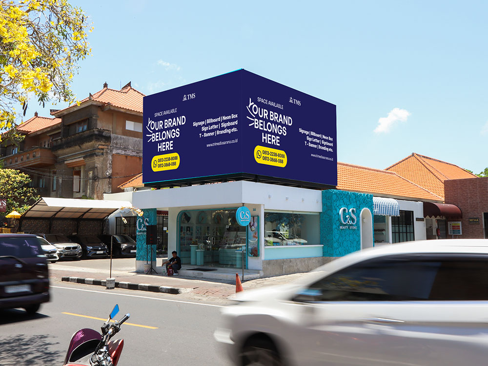 Premium 3D LED videotron positioned on a high-exposure corner building along Jalan Raya Kuta, one of Bali’s busiest commercial and tourism corridors. The unique 3D format delivers immersive visual impact, capturing attention from multi-directional traffic and maximizing brand recall in a dense urban environment.